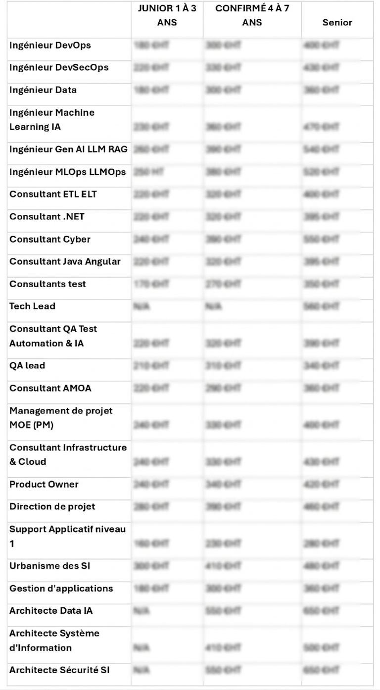 Grille de Tarifs en centres de services 2026 en TJM – À valider sur devis selon votre périmètre